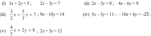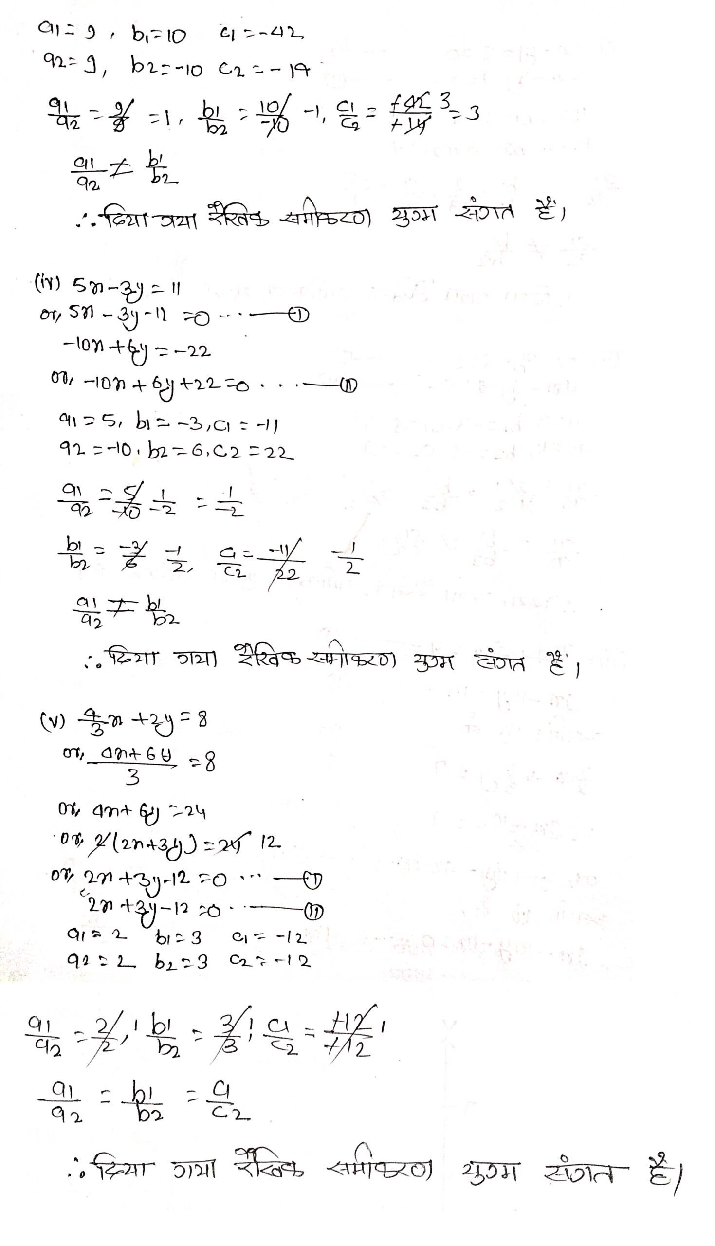 की तुलना कर ज्ञात कीजिए कि निम्न रैखिक समीकरणों के युग्म संगत हैं या असंगत-
