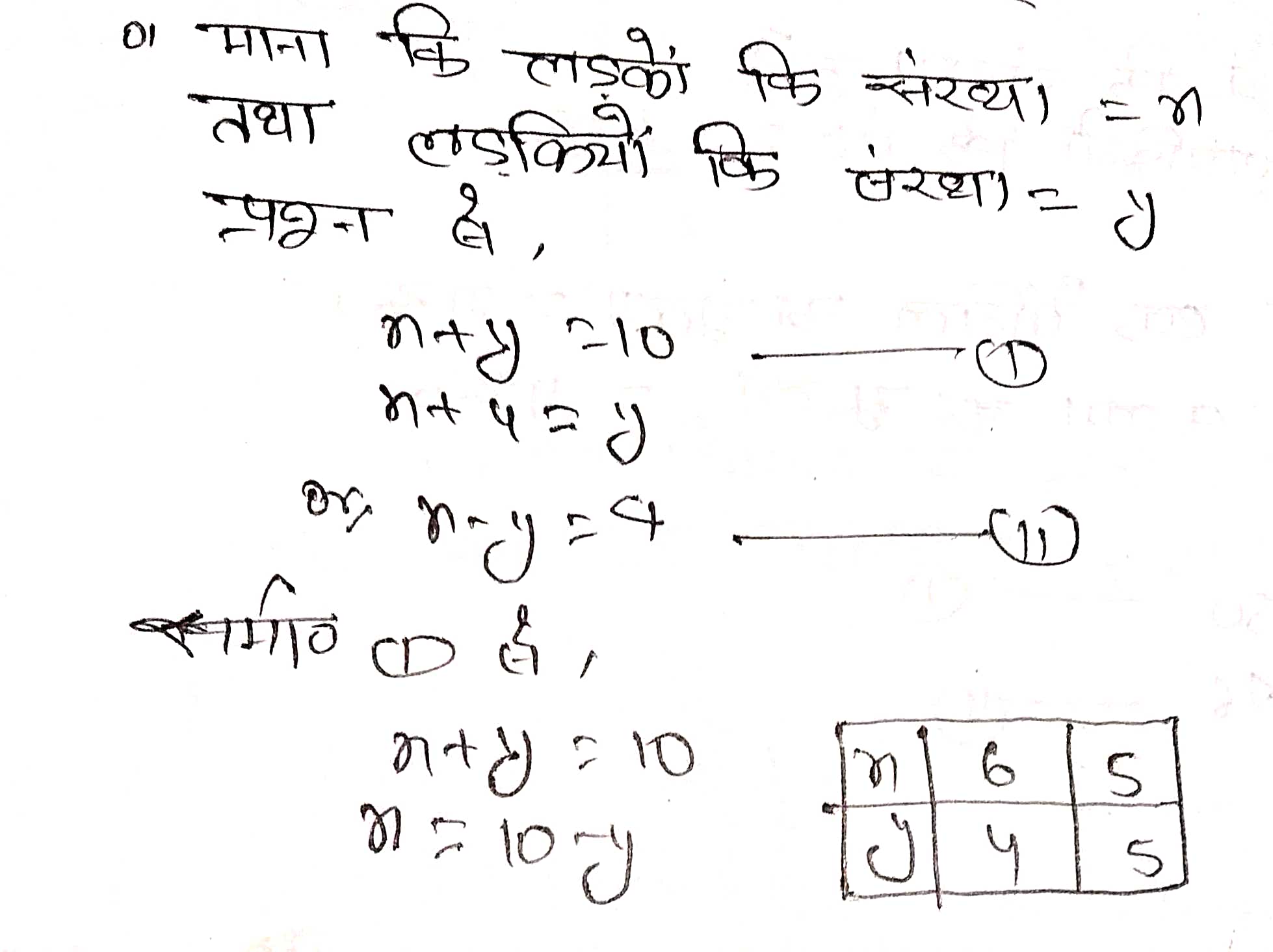 (i) कक्षा X के 10 विद्यार्थियों ने एक गणित की पहेली प्रतियोगिता में भाग लिया। यदि लड़कियों की संख्या लड़कों की संख्या से 4 अधिक हो तो प्रतियोगिता में भाग लिए लड़कों और लड़कियों की संख्या ज्ञात कीजिए।