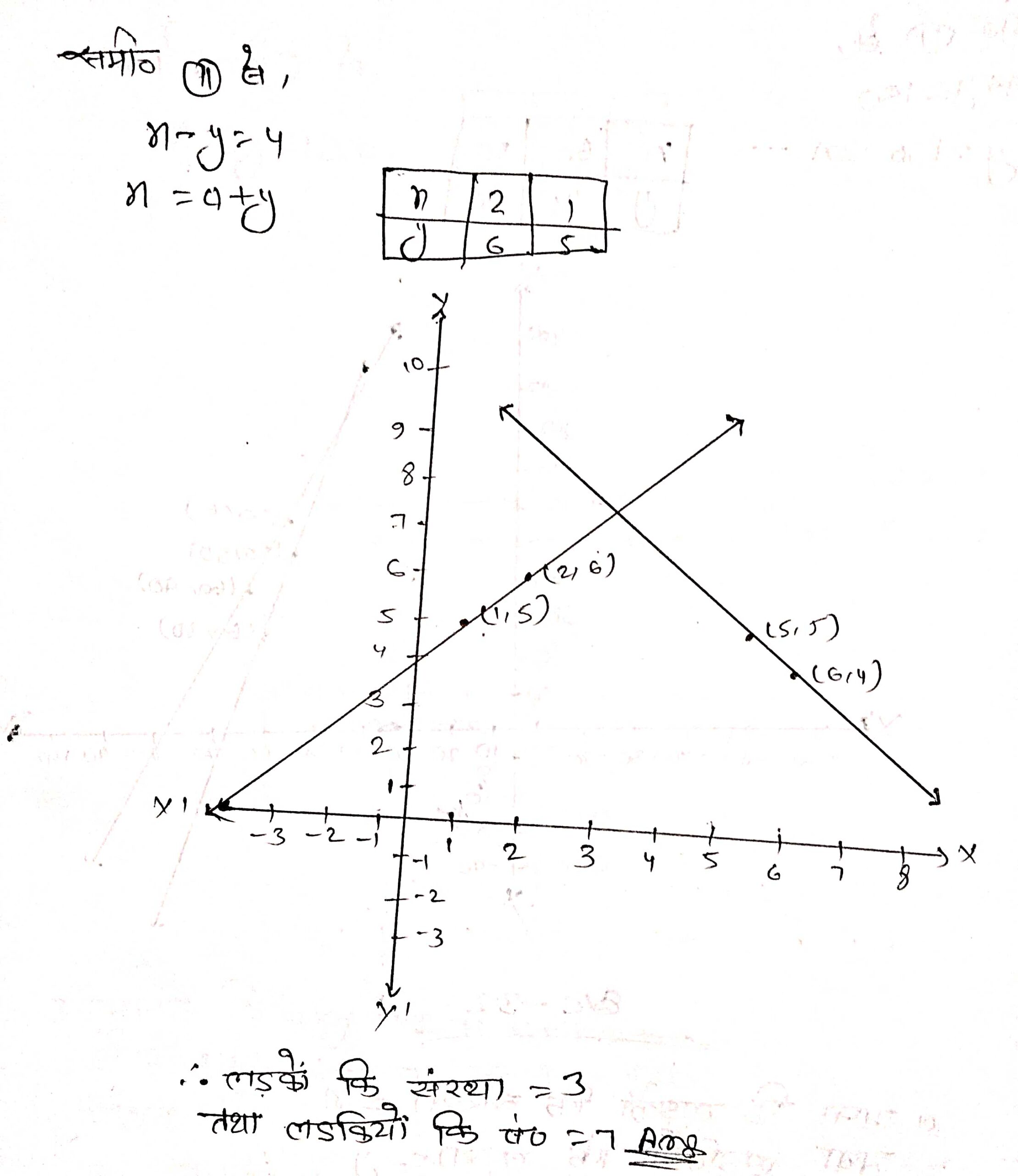 प्रश्न 1. निम्न समस्याओं में रैखिक समीकरणों के युग्म बनाइए और उनके ग्राफीय विधि से हल ज्ञात कीजिए-