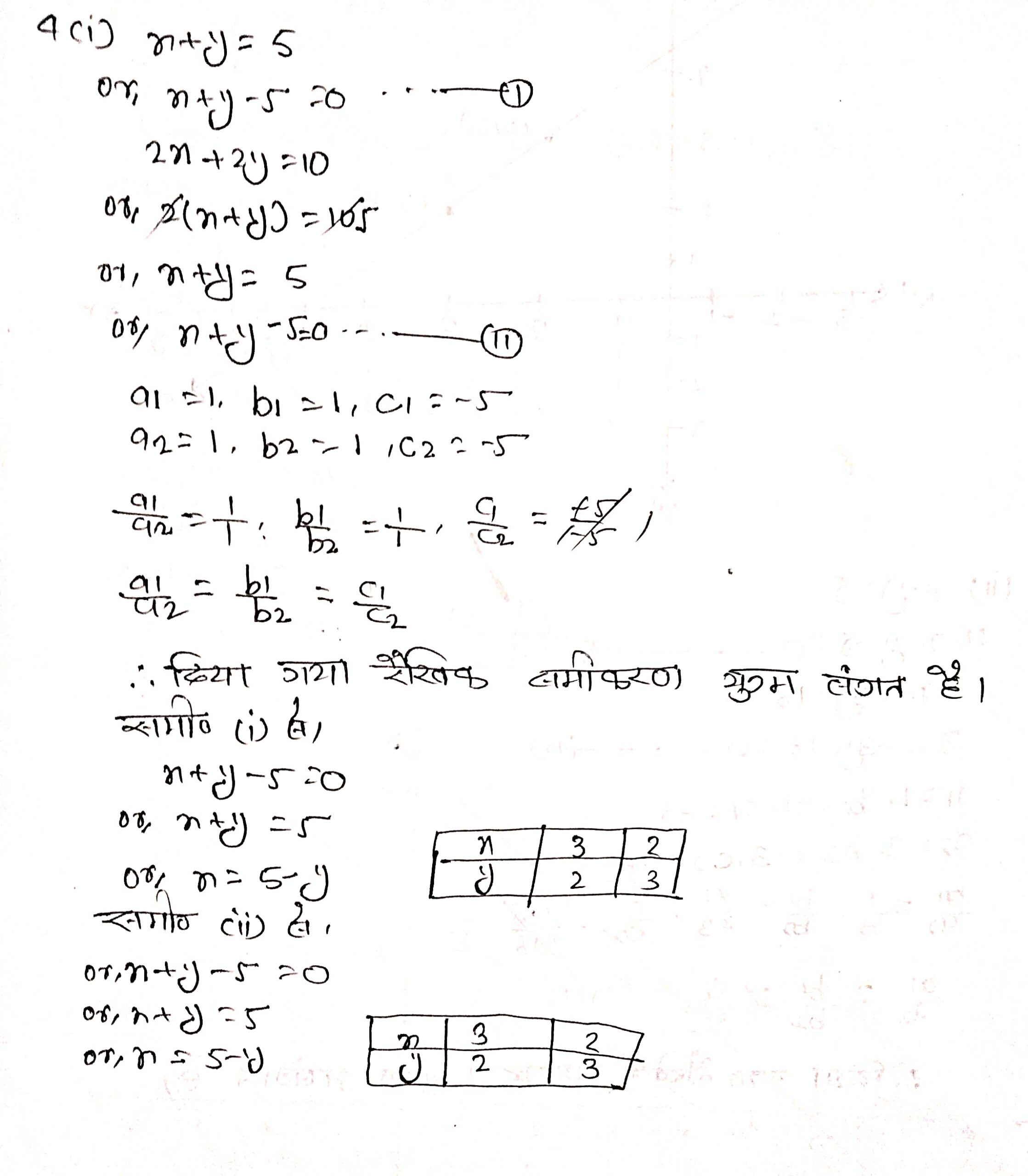 (i) x + y = 5, 2x + 2y = 10