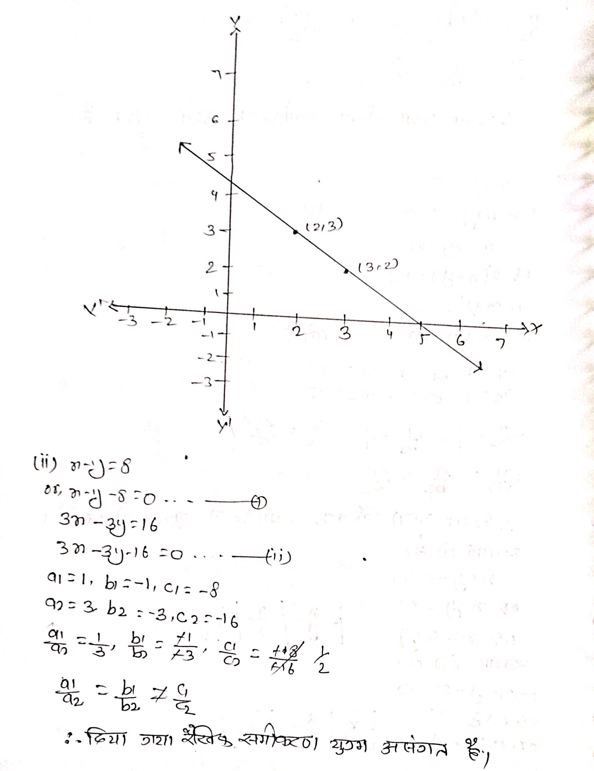 (ii) x – y = 8, 3x – 3y = 16