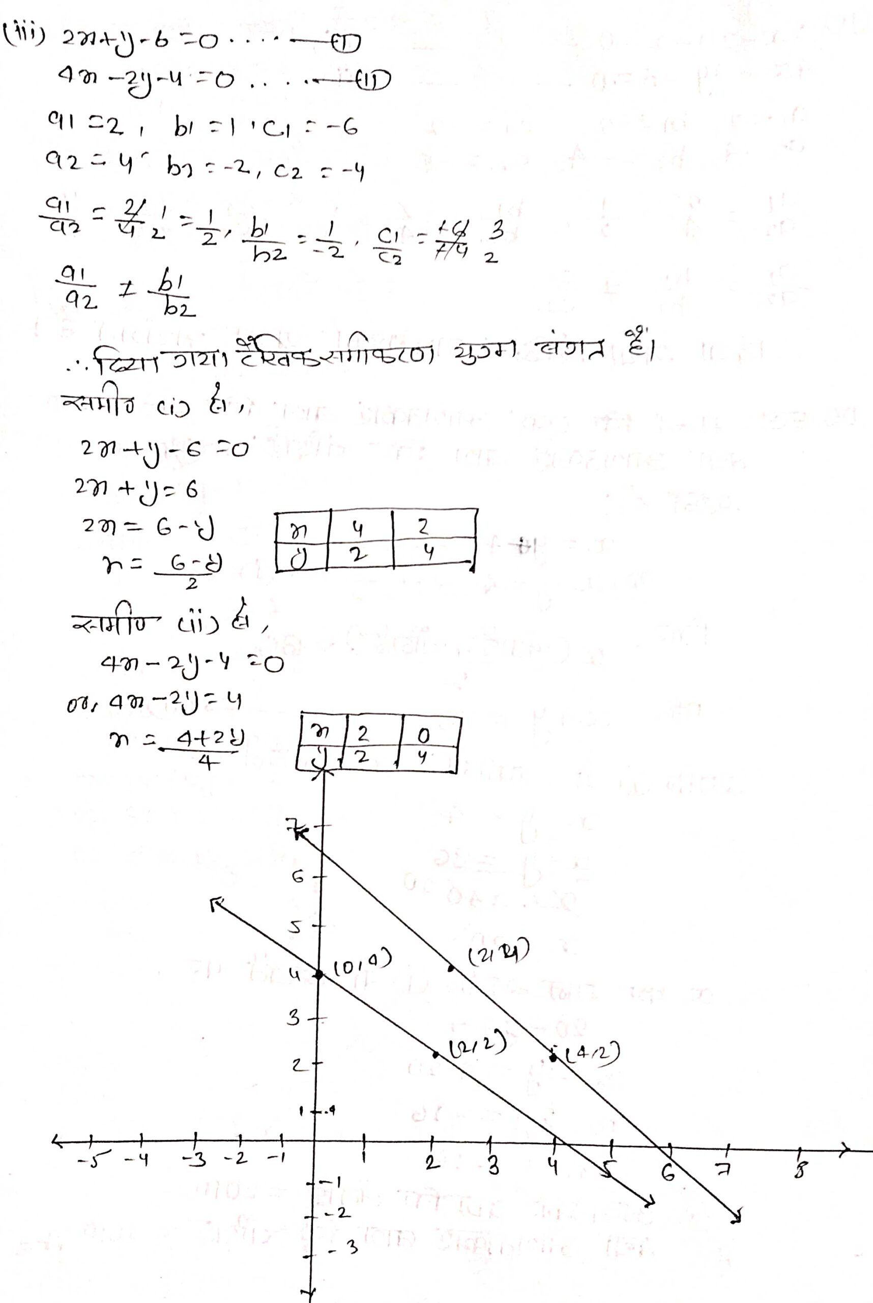 (iii) 2x + y – 6 = 0, 4x – 2y – 4 = 0