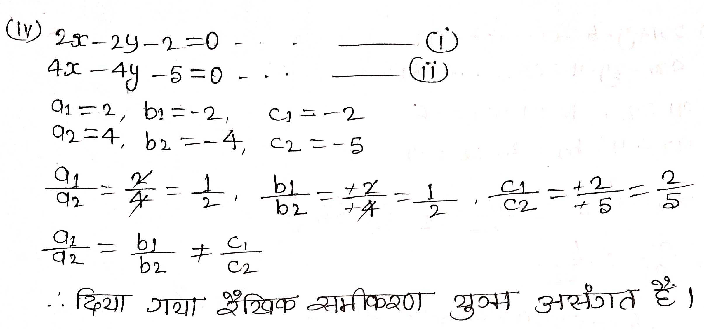 (iv) 2x – 2y – 2 = 0, 4x – 4y – 5 = 0