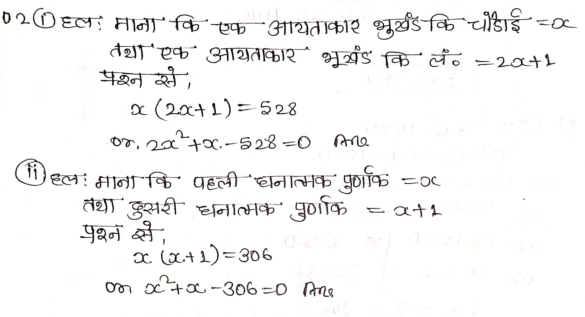 (ii) दो क्रमागत धनात्मक पूर्णांकों का गुणनफल 306 है। हमें पूर्णांकों को ज्ञात करना है।