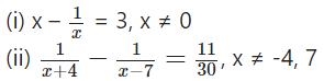 प्रश्न 4. 3 वर्ष पूर्व रहमान की आयु (वर्षों में) का व्युत्क्रम और अब से 5 वर्ष पश्चात् आयु के व्युत्क्रम का योग 13 है। उसकी वर्तमान आयुज्ञात कीजिए।