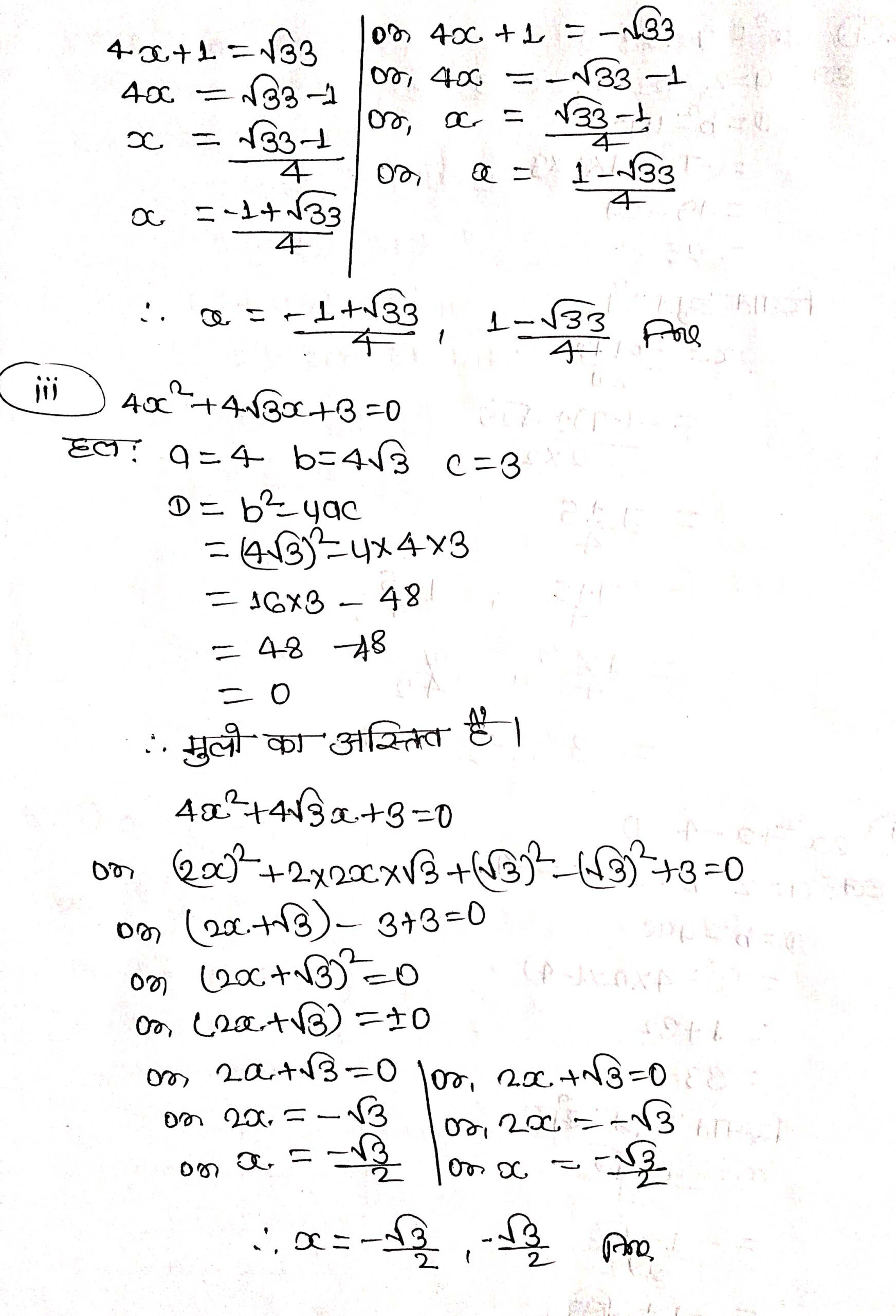 प्रश्न 3. निम्न समीकरणों के मूल ज्ञात कीजिए :
