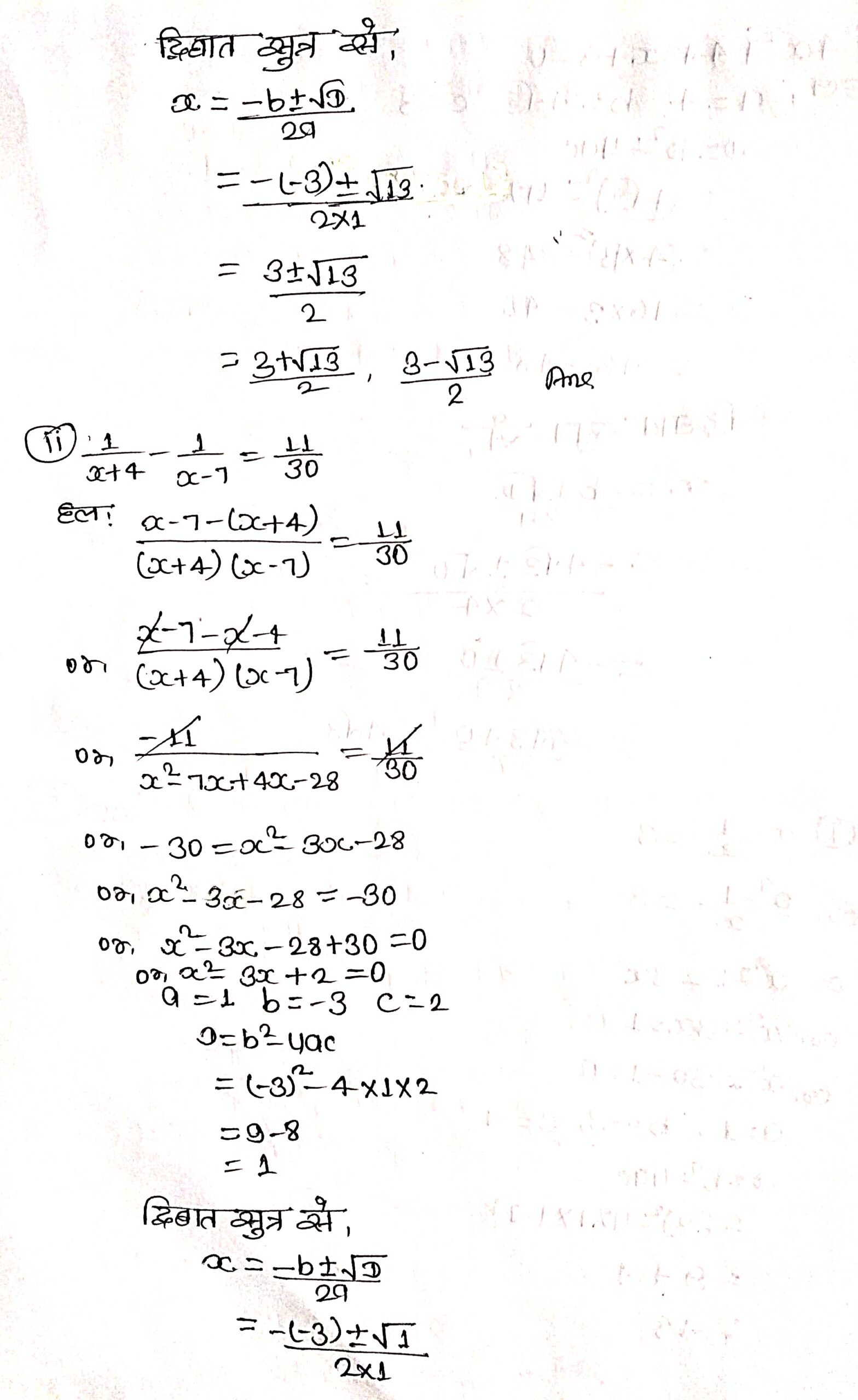 प्रश्न 2. उपर्युक्त प्रश्न (1) में दिए गए द्विघात समीकरणों के मूल, द्विघाती सूत्र का उपयोग करके ज्ञात कीजिए।