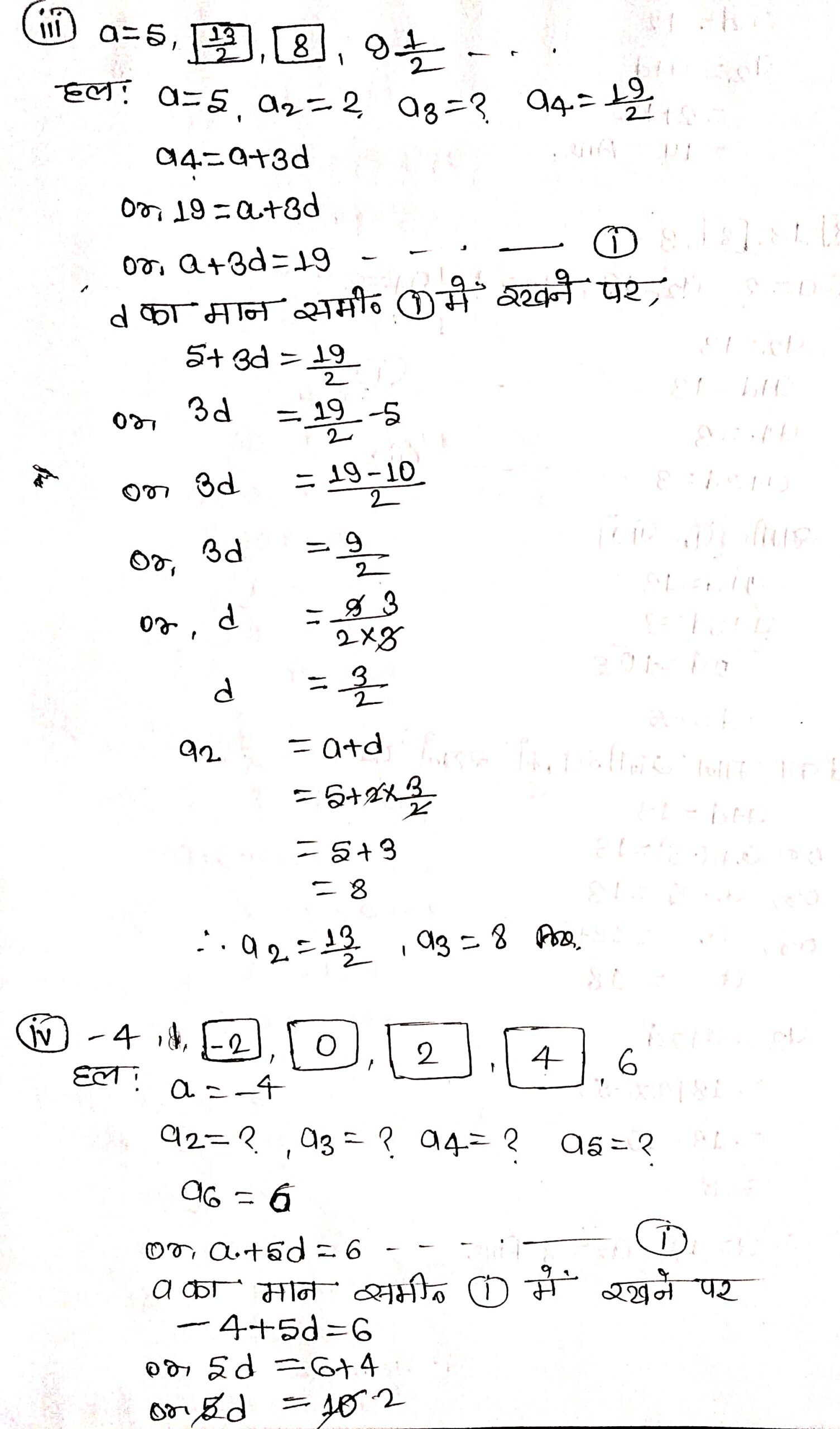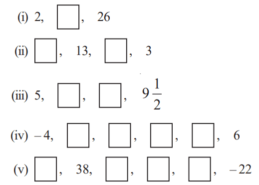 प्रश्न 3. निम्नलिखित समान्तर श्रेढ़ियों में रिक्त खानों (boxes) के पदों को ज्ञात कीजिए :