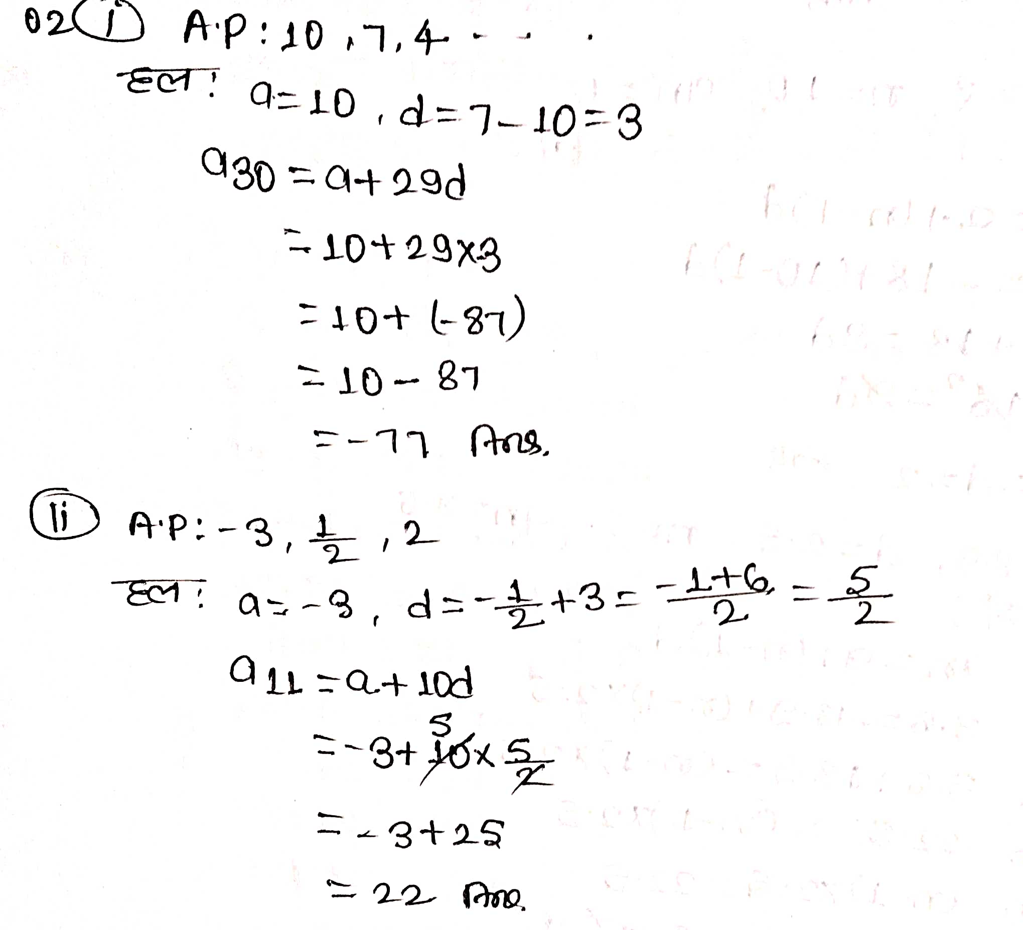 (i) A.P.: 10, 7, 4,……, का 30 वाँ पद है :