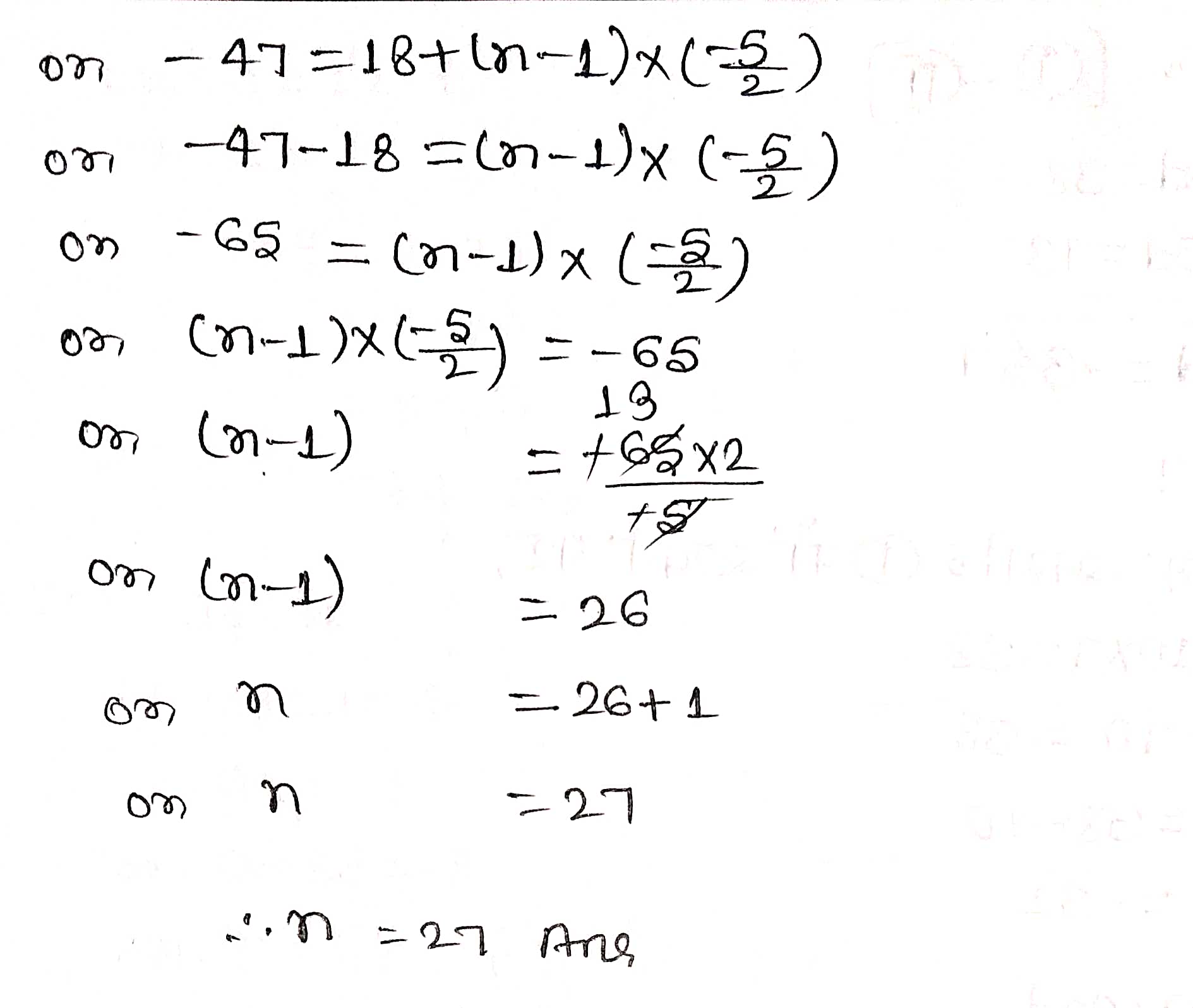(ii) A.P.: -3, −1/2, 2,….. का 11 वाँ पद है :