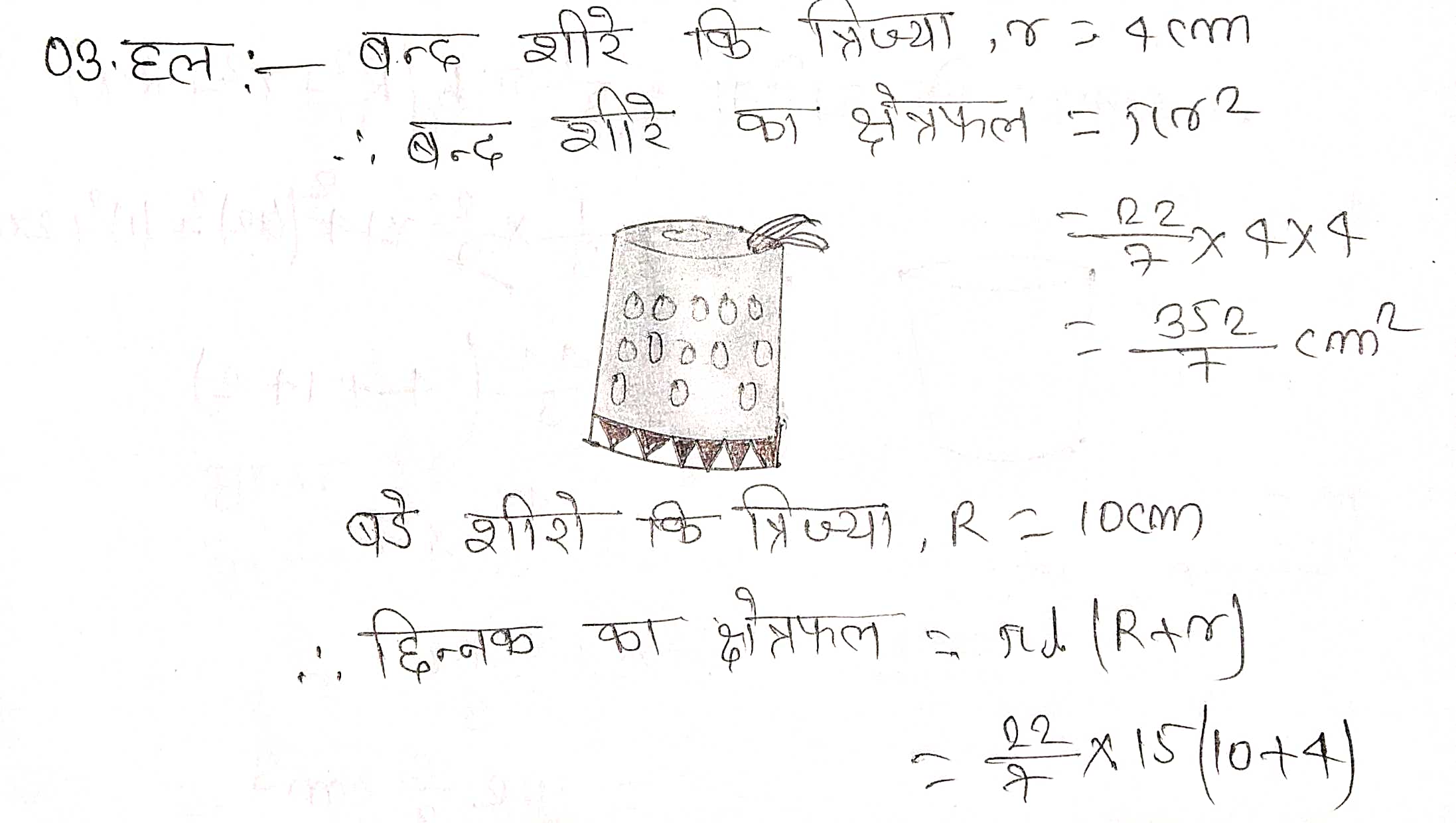 (जब तक अन्यथा न कहा जाए, π = 22/7 लीजिए।)