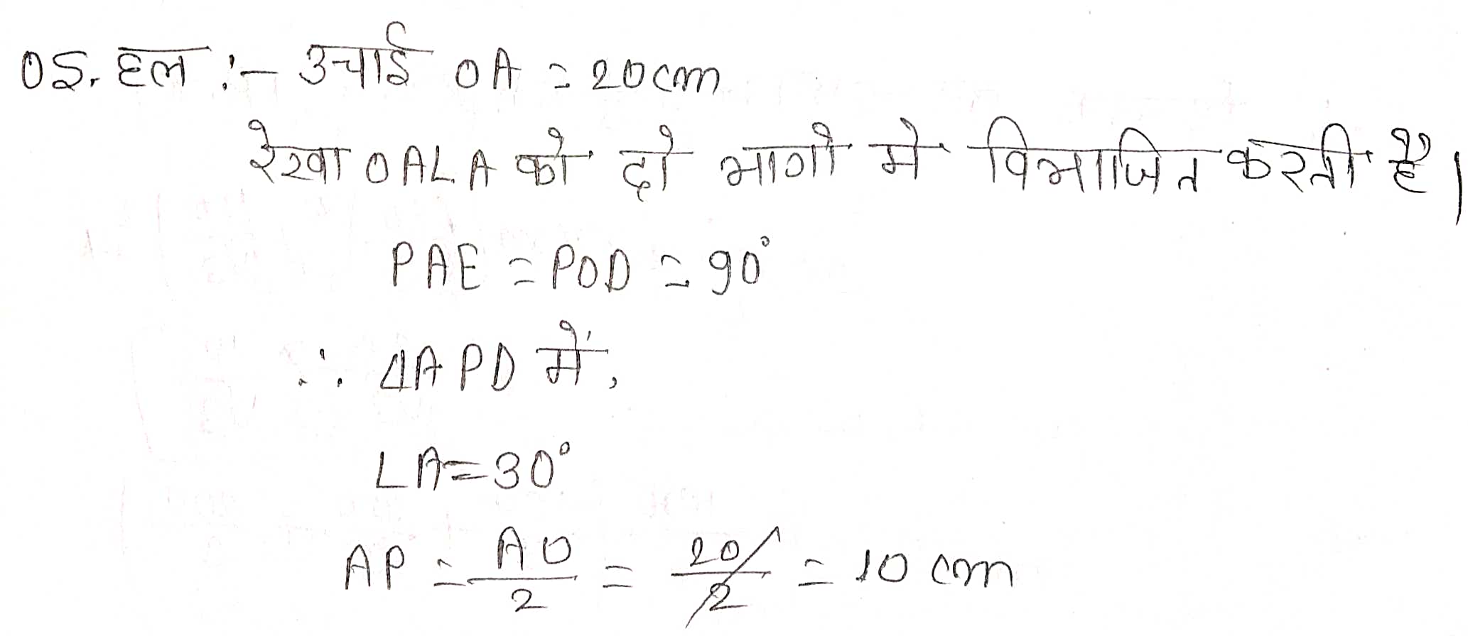 प्रश्न 5. 20 cm ऊँचाई और शीर्ष कोण (vertical angle) 60° वाले एक शंकु को उसकी ऊँचाई के बीचो-बीच से होकर जाते हुए एक तल से दो भागों में काटा गया है, जबकि तल शंकु के आधार के समान्तर है। यदि इस प्राप्त शंकु के छिन्नक को व्यास 116 cm वाले एक तार के रूप में बदल दिया जाता है तो तार की लम्बाई ज्ञात कीजिए।