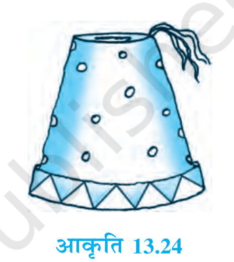 प्रश्न 3. एक तुर्की टोपी शंकु के छिन्नक के आकार की है (चित्र देखिए)। यदि इसके खुले सिरे की त्रिज्या 10 cm है, ऊपरी सिरे की त्रिज्या 4 cm है और टोपी की तिर्यक ऊँचाई 15 cm है, तो इसके बनाने में प्रयुक्त पदार्थ का क्षेत्रफल ज्ञात कीजिए।