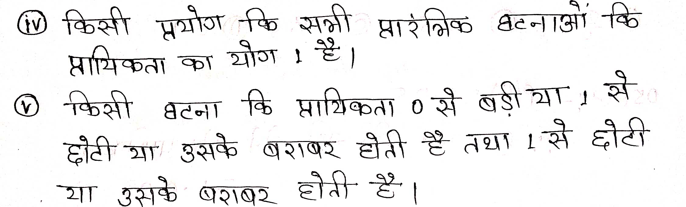 4. किसी प्रयोग की सभी प्रारम्भिक घटनाओं की प्रायिकताओं का योग _________ है।