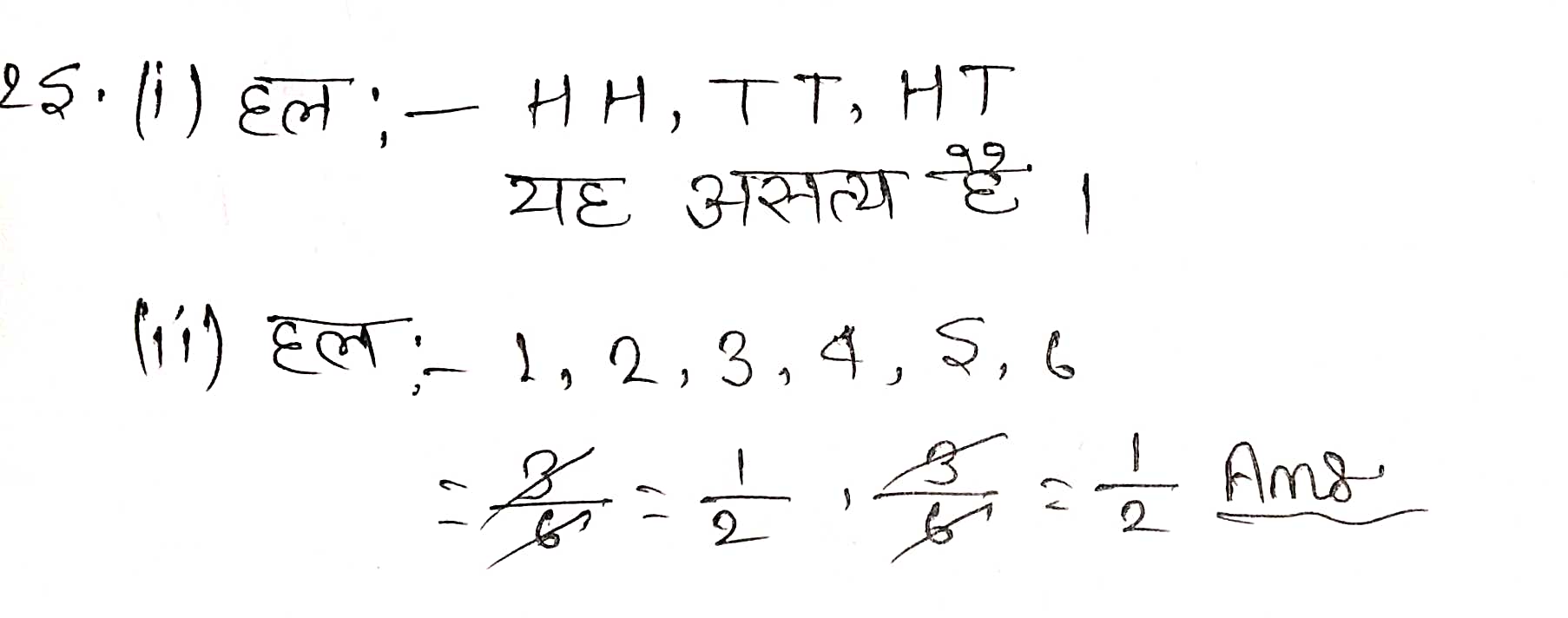 (i) यदि दो सिक्कों को एक साथ उछाला जाता है तो इसके तीन सम्भावित परिणाम-दो चित, दो पट या प्रत्येक एक बार हैं। अतः इनमें से प्रत्येक परिणाम की प्रायिकता 1/3 है।