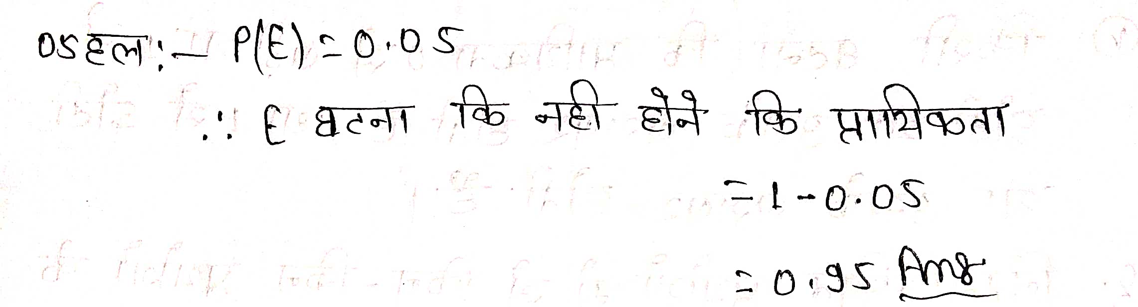 प्रश्न 5. यदि P(E) = 0.05 है तो ‘E-नहीं की प्रायिकता क्या है