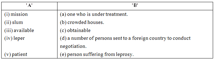 C.1. Ask the learners to match the words in Column ‘A’ with the meanings given in Column ‘B’.