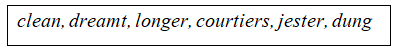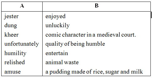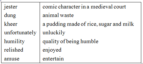 Ans. 1. jester, 2. dreamt, dung, 3. courtiers, 4. longer. 5. clean