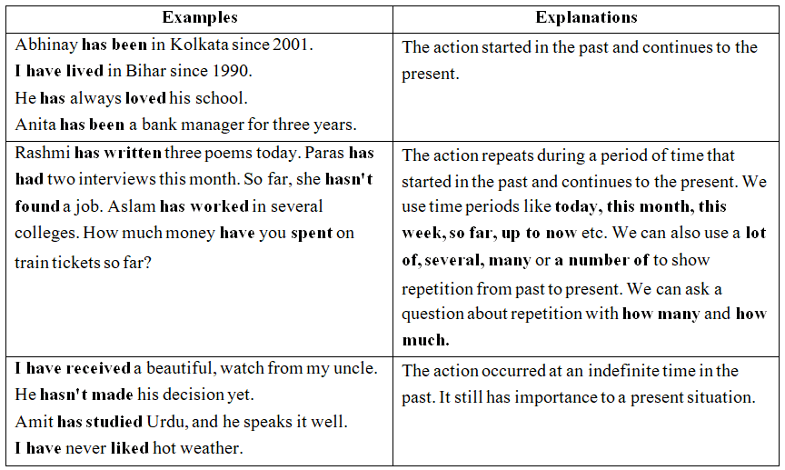 We use the present perfect tense to show that an action or state started in the past and continues to the present; e.g.