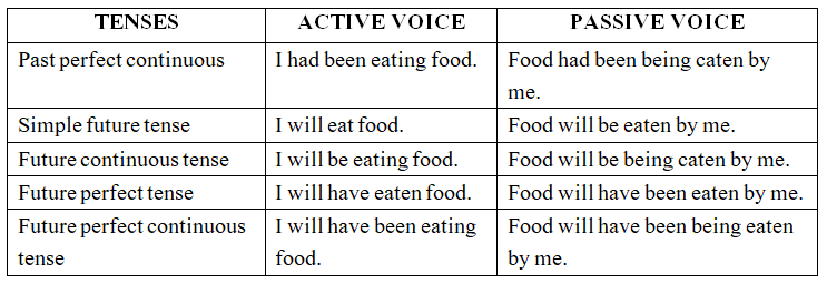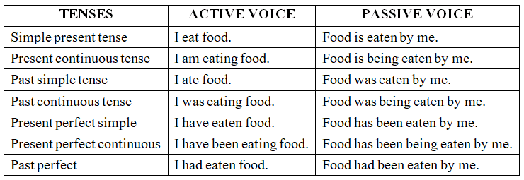 Passive voice can be used with different tenses and with modals. The tense of the sentence is shown by the verb be. You can use the past participle. with every tense. You can see in the following table how the verbs in active sentences are changed in passive sentences,