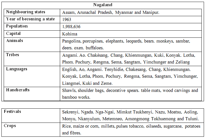 E.1. Listen to your teacher and complete the following table on Nagaland.