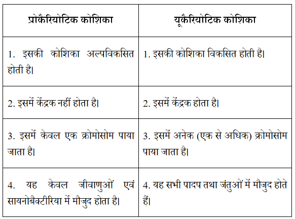 प्रोकैरियोटिक एवं यूकैरियोटिक कोशिका में अंतर-
