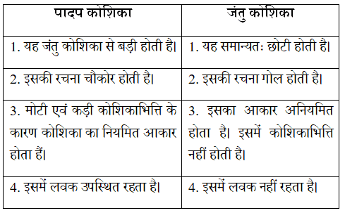 जन्तु कोशिका का शरीर गोलाकार होता है, जबकि पादप कोशिका का शरीर चौकोर होता है।