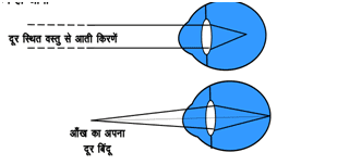 2. दूर-दृष्टि दोष–जिस दोष में नेत्र दूर की वस्तुओं को साफ-साफ देख सकता है, किन्तु निकट की स्थित वस्तुओं को साफ-साफ नहीं देख सकता है। दूर-दृष्टि दोष कहलाता है।