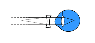 2. निकट-दृष्टि दोष— इसके लिए अवतल लेंस का प्रयोग किया जाता है।