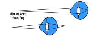 2. नेत्र-लेंस का आवश्यकता से अधिक मोटा हो जाना जिससे उसकी फोकस-दूरी का कम हो जाना