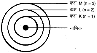 प्रश्न 5. तीन कक्षाओं वाले बोर के परमाणु मॉडल का चित्र बनाइए।
