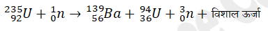 जब यूरेनियम-235 परमाणुओं पर धीमी गति वाले न्युट्रॉनों की बमबारी की जाती है तो यूरेनियम का भारी नाभिक टूटकर दो मध्यम